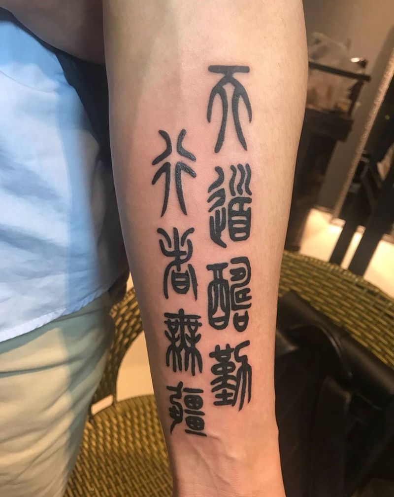 当前位置: 首页 >云南省红河哈尼族彝族自治州纹身店-左右刺青工作室纹身图案>天道酬勤仁者无疆纹身图片