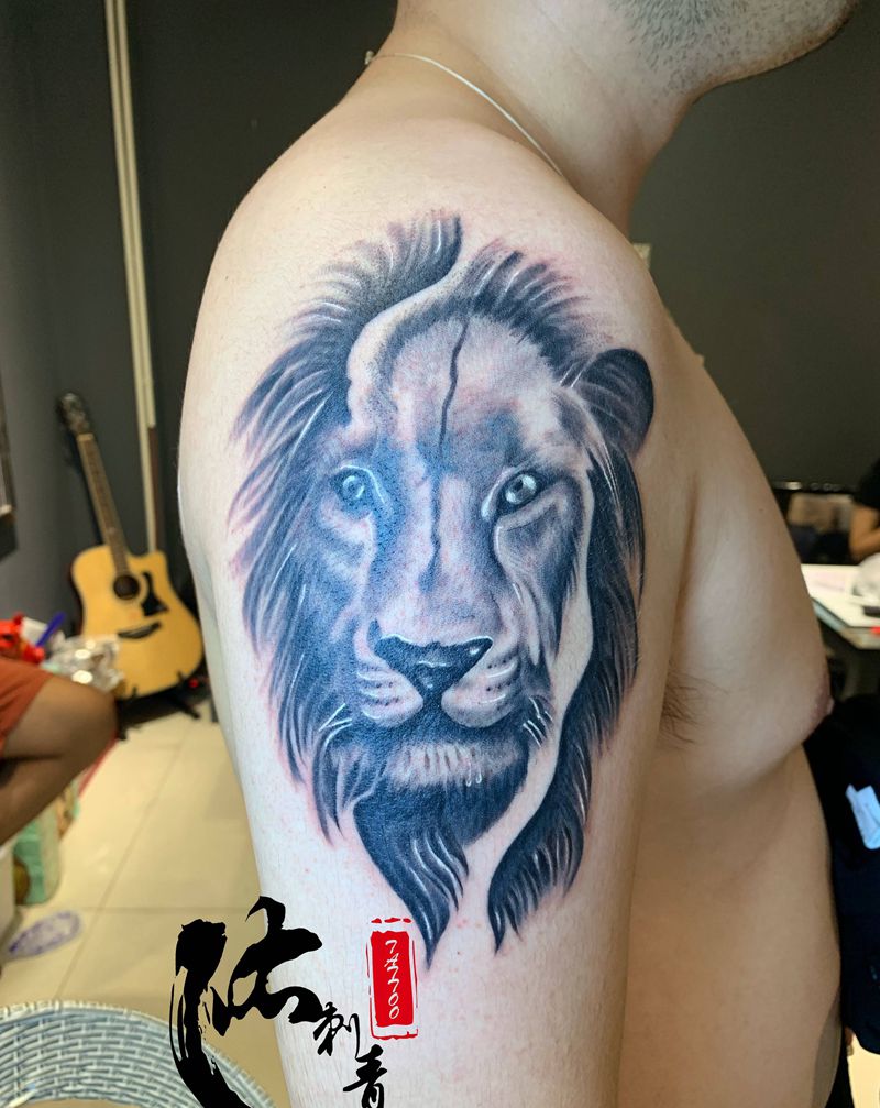 当前位置: 首页 >云南省红河哈尼族彝族自治州纹身店-左右刺青工作室纹身图案>写实狮子纹身图片_手臂欧美写实纹身图案