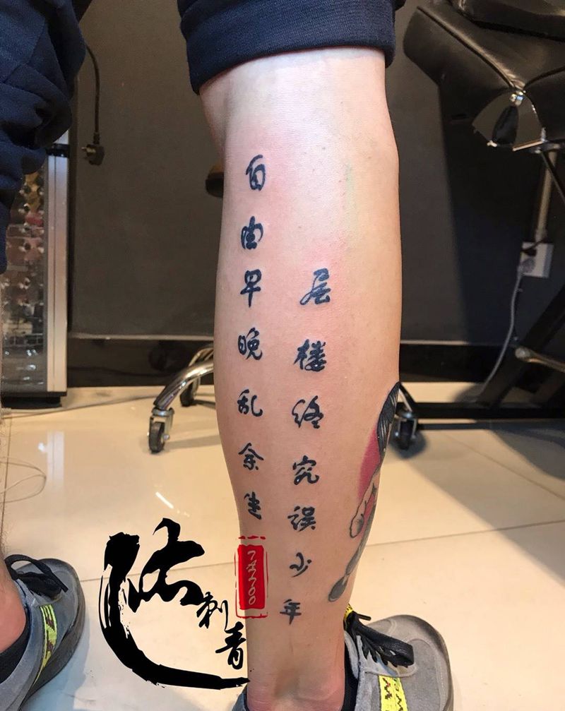 当前位置: 首页 >云南省红河哈尼族彝族自治州纹身店-左右刺青工作室纹身图案>层楼终究误少年 自由早晚乱余生纹身图片