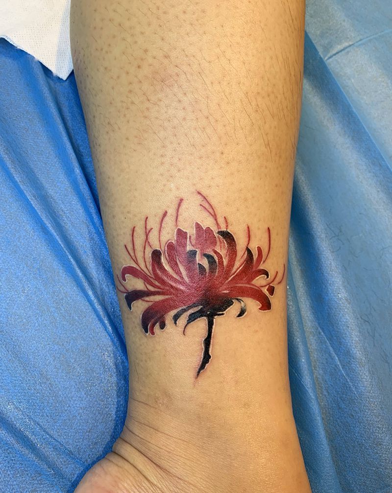 彼岸花纹身图片_脚部水墨纹身图案