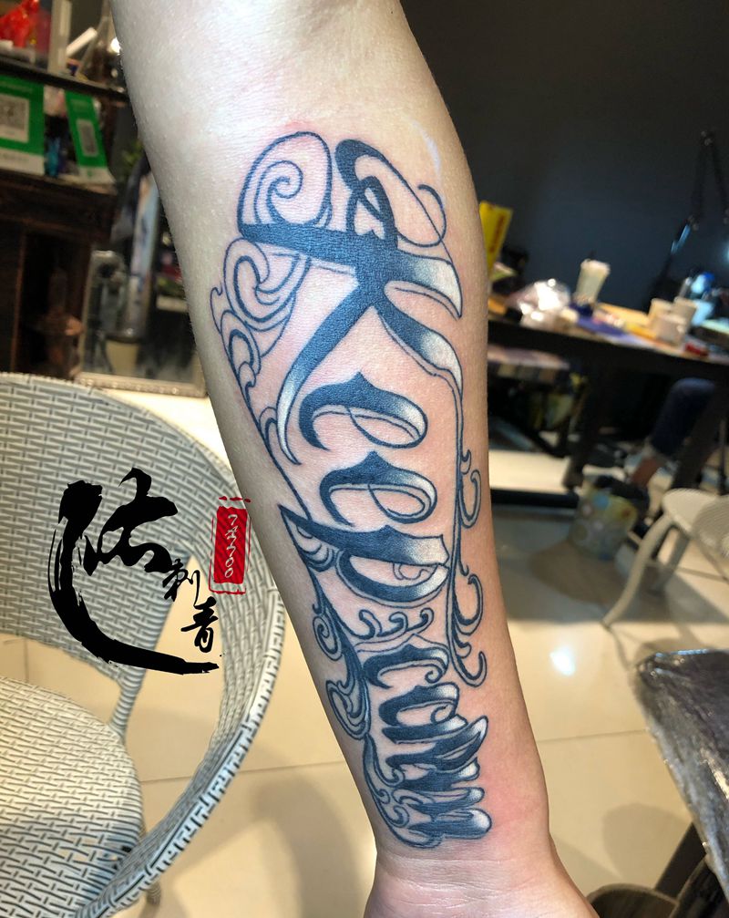 当前位置: 首页 >云南省红河哈尼族彝族自治州纹身店-左右刺青工作室纹身图案>花体英文纹身图片_手臂花体字纹身图案