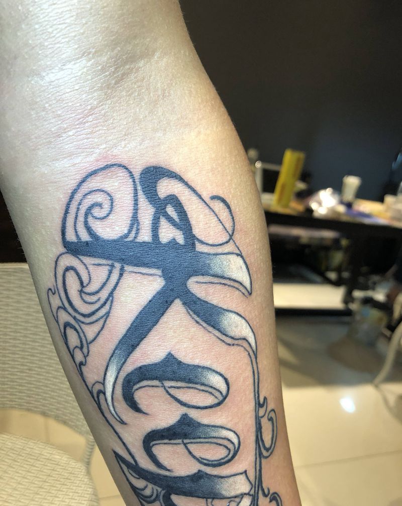 当前位置: 首页 >云南省红河哈尼族彝族自治州纹身店-左右刺青工作室纹身图案>花体英文纹身图片_手臂花体字纹身图案