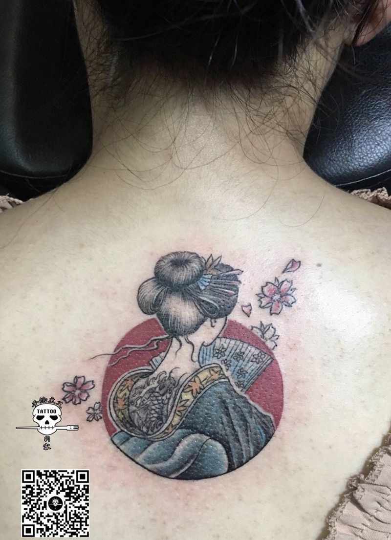 当前位置: 首页 >云南省文山苗族自治州纹身店-手绘主义刺客纹身图案>艺妓纹身图片_成品背部清新人物纹身图案