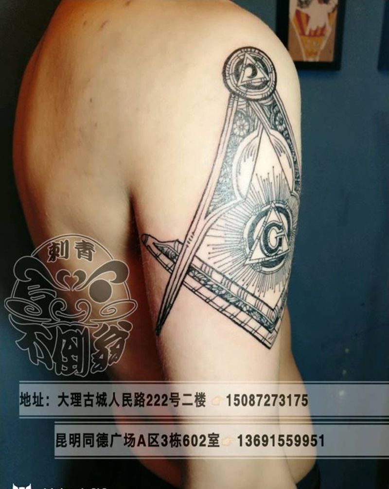 当前位置: 首页 >云南省大理白族自治州纹身店-不倒翁刺青穿孔(大理店)纹身图案>共济会标志纹身图片_手臂图腾纹身图案