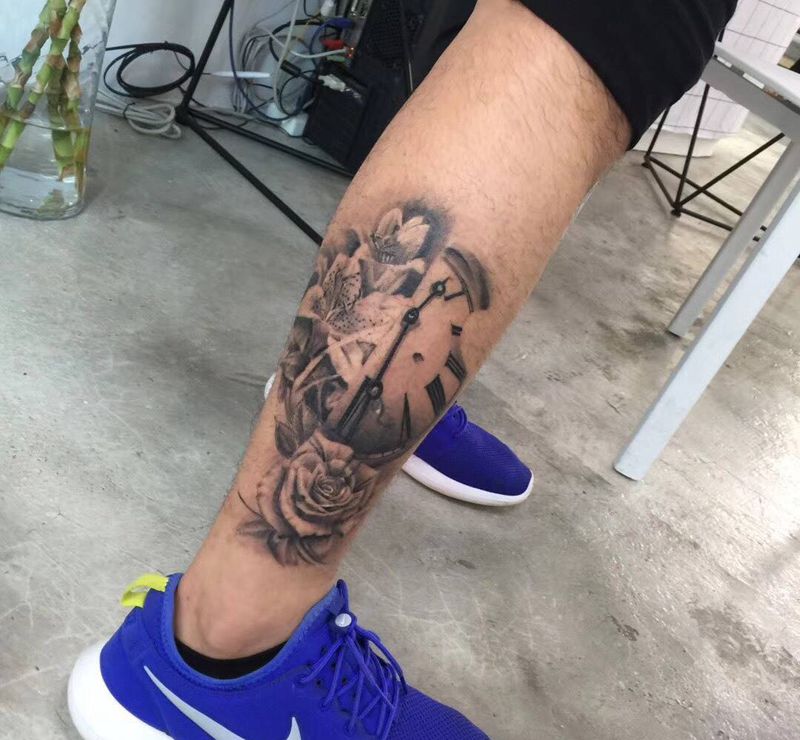 • T网红王老大花腿龙纹身图片_腿部新传统纹身图案