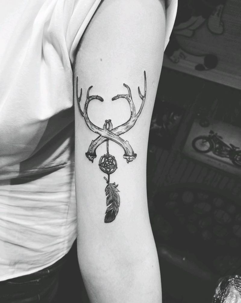 鹿角纹身图片_手臂欧美清新动物成品纹身图案