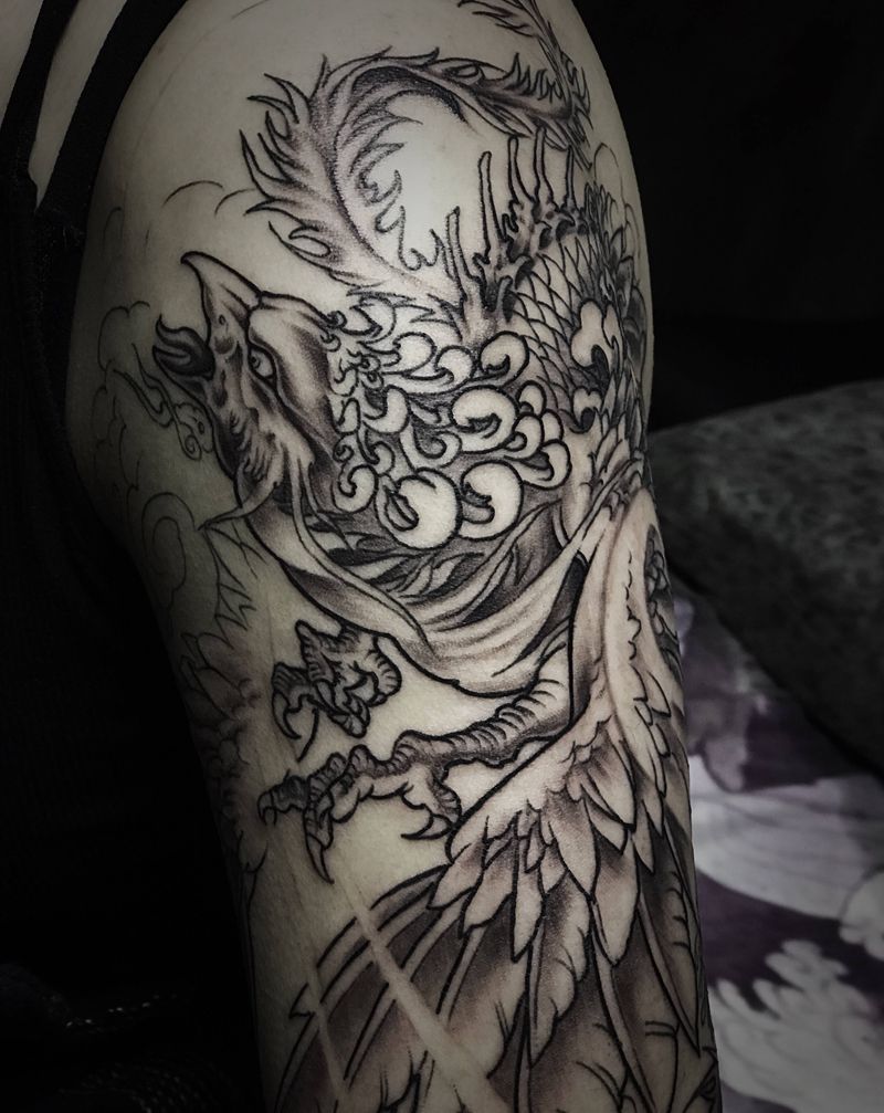 凤凰纹身图片_手臂新传统未完成纹身图案