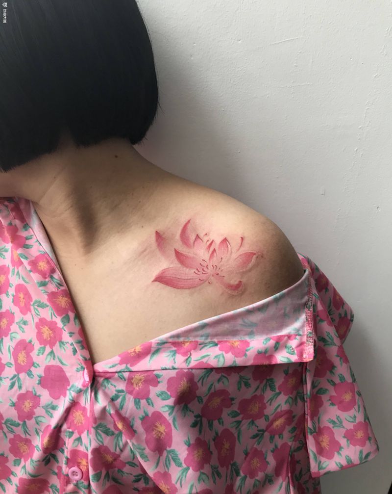 莲花纹身图片_肩部水彩纹身图案