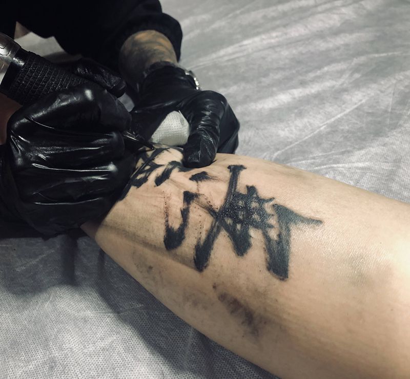当前位置: 首页 >云南省大理白族自治州纹身店-叁肆纹身工作室纹身图案>无悔纹身图片_腿部水墨纹身图案