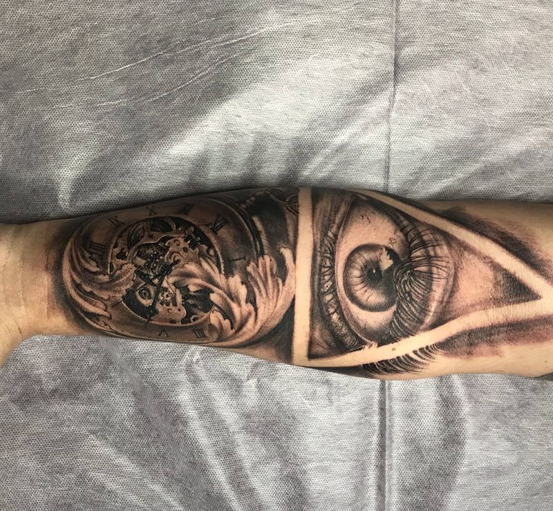 当前位置: 首页 >云南省大理白族自治州纹身店-叁肆纹身工作室纹身图案>钟表纹身图片_手臂欧美写实纹身图案