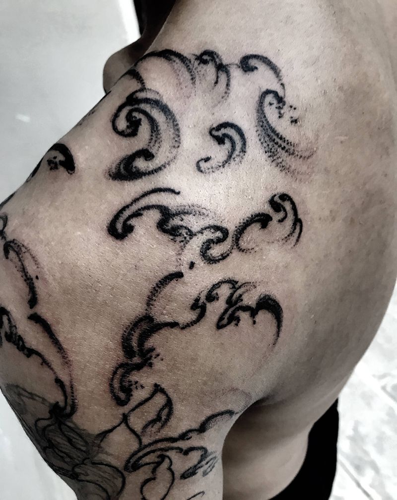 当前位置: 首页 >云南省大理白族自治州纹身店-叁肆纹身工作室纹身图案>遮盖(未完)纹身图片_新传统纹身图案