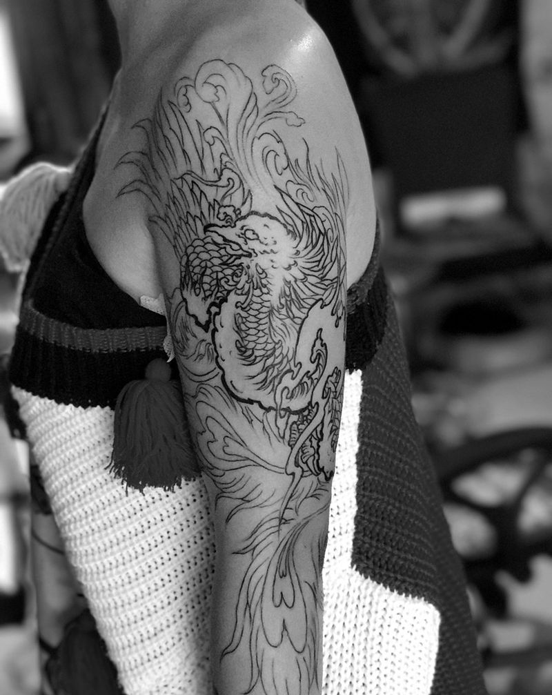 • T网红王老大花腿龙纹身图片_腿部新传统纹身图案