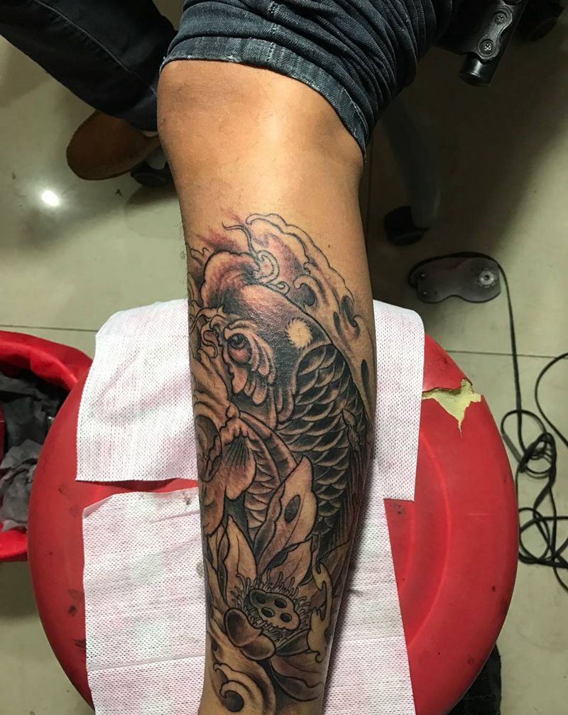 • T网红王老大花腿龙纹身图片_腿部新传统纹身图案