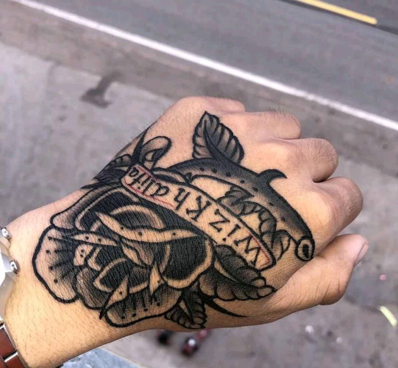 • 手背潮流时尚的玫瑰花眼睛纹身图案
