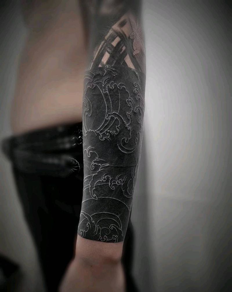 当前位置: 首页 >云南省大理白族自治州纹身店-叁肆纹身工作室纹身图案>黑浪纹身图片_手臂纹身图案