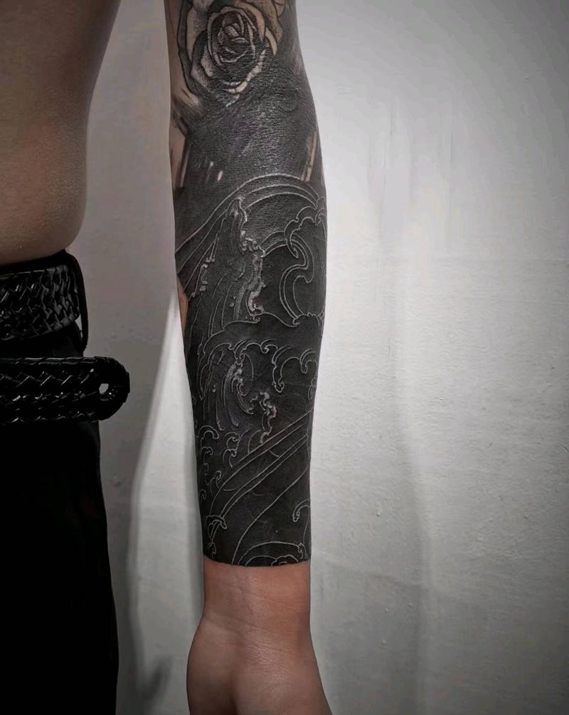 当前位置: 首页 >云南省大理白族自治州纹身店-叁肆纹身工作室纹身图案>黑浪纹身图片_手臂纹身图案