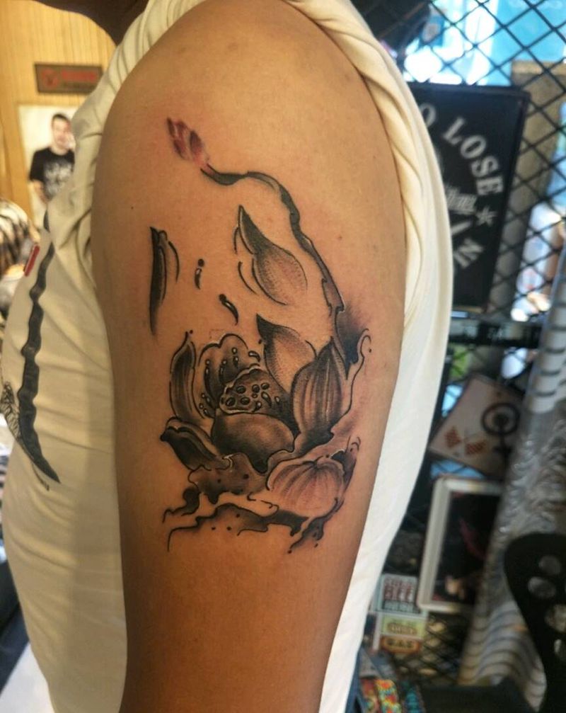 当前位置: 首页 >云南省大理白族自治州纹身店-叁肆纹身工作室纹身图案>荷花纹身图片