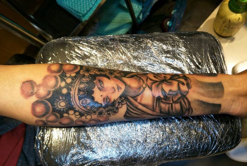 当前位置: 首页 >云南省大理白族自治州纹身店-叁肆纹身工作室纹身图案>艺妓纹身图片