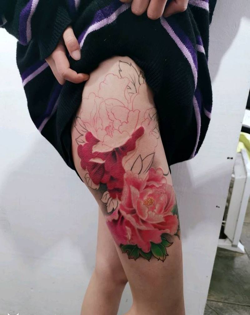 牡丹半成品(粉色还在掉皮)纹身图片