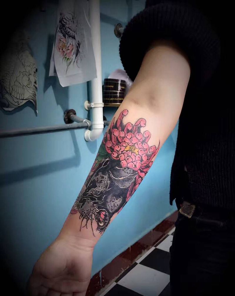 • 女性大花胸纹身_43张霸气漂亮的女性大花胸纹身图案作品