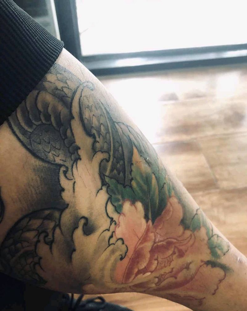 • T网红王老大花腿龙纹身图片_腿部新传统纹身图案