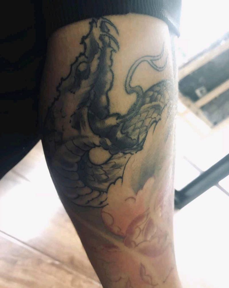 • T网红王老大花腿龙纹身图片_腿部新传统纹身图案