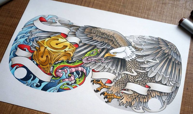 • T网红王老大花腿龙纹身图片_腿部新传统纹身图案