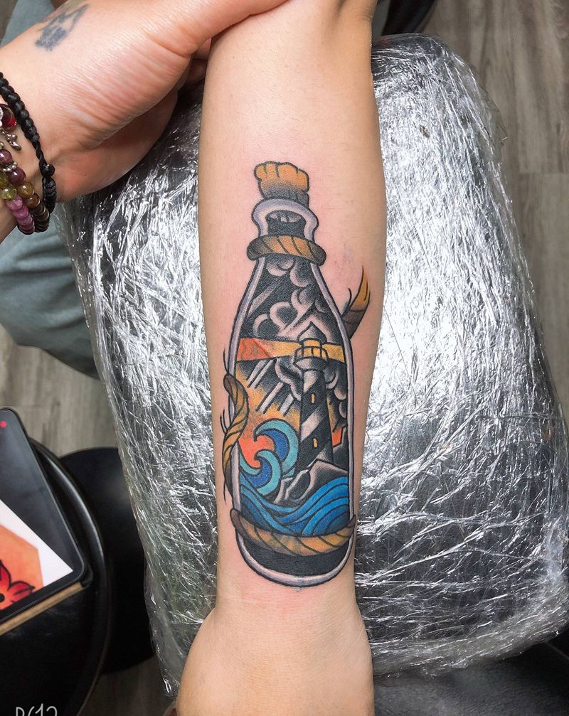 当前位置: 首页 >西藏日喀则地区纹身店-涅墨刺青纹身图案>遮盖纹身纹身图片_手臂Old School遮盖纹身图案