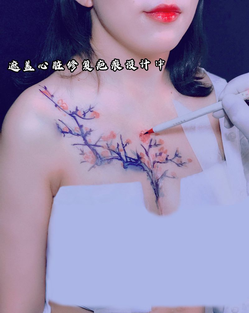 疤痕遮盖纹身图片_胸部水墨纹身图案