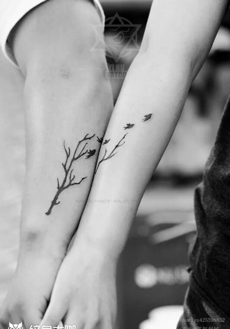 连理枝纹身图片_成品手部清新情侣纹身图案