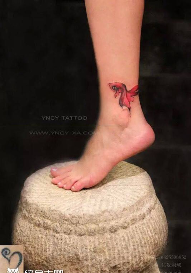 当前位置: 首页 >陕西省西安市纹身店-艺奴刺域纹身图案>原创飞舞的小彩鱼纹身图片_成品腿部清新动物纹身图案