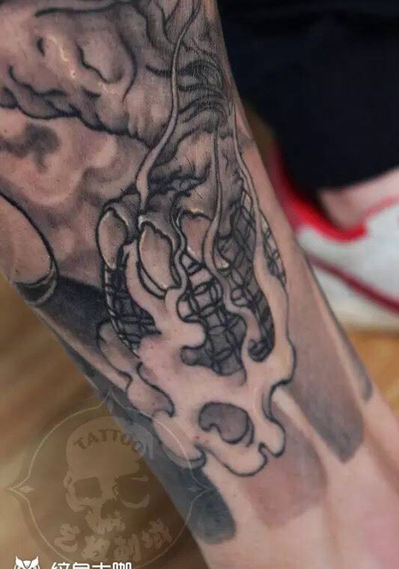 • T网红王老大花腿龙纹身图片_腿部新传统纹身图案