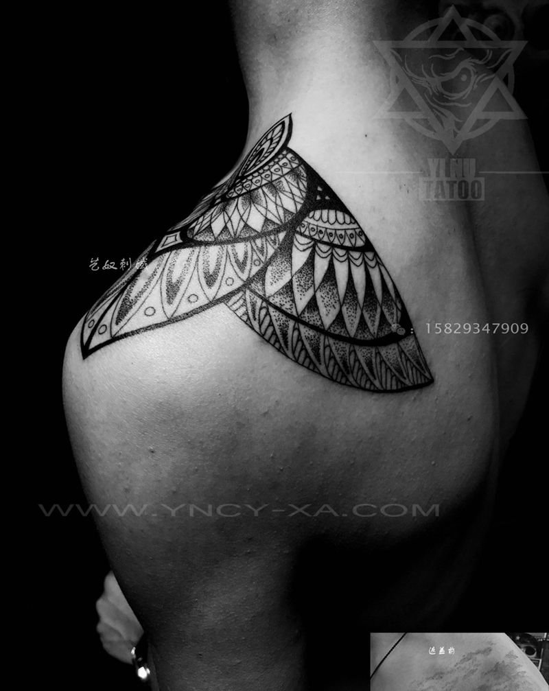 • 纹身吧推荐的披肩图腾半胛纹身图案作品展示