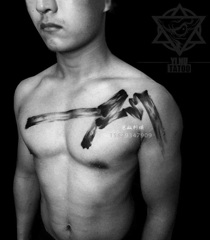 和尚老师原创设计水墨风刺青。强大的底蕴下越沉淀越美味[愉快]纹身图片_成品胸部国画原创艺奴刺域水墨画纹身图案