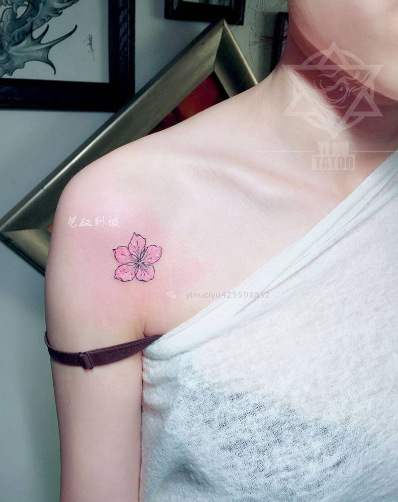 当前位置: 首页 >陕西省西安市纹身店-艺奴刺域纹身图案>樱花纹身图片_成品肩部清新花艺奴刺域纹身图案