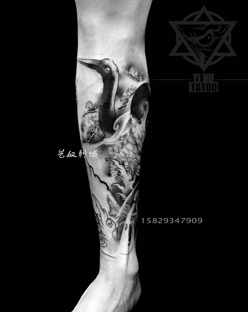 和尚老师原创小腿未完待续纹身图片_腿部传统原创艺奴刺域动物纹身图案