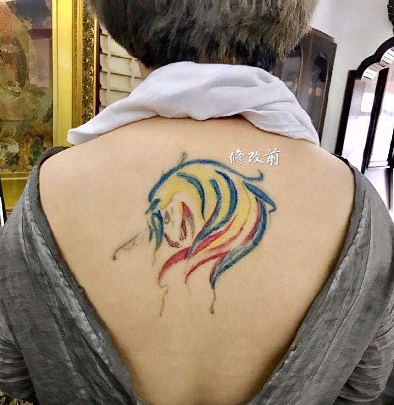 修改后的独角兽纹身图片_成品背部清新艺奴刺域动物纹身图案