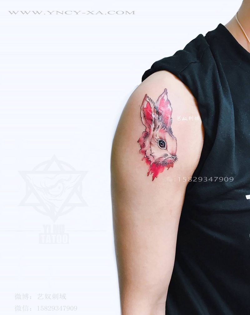 疤痕遮盖,小兔纸[调皮]纹身图片_成品手臂清新动物艺奴刺域纹身图案