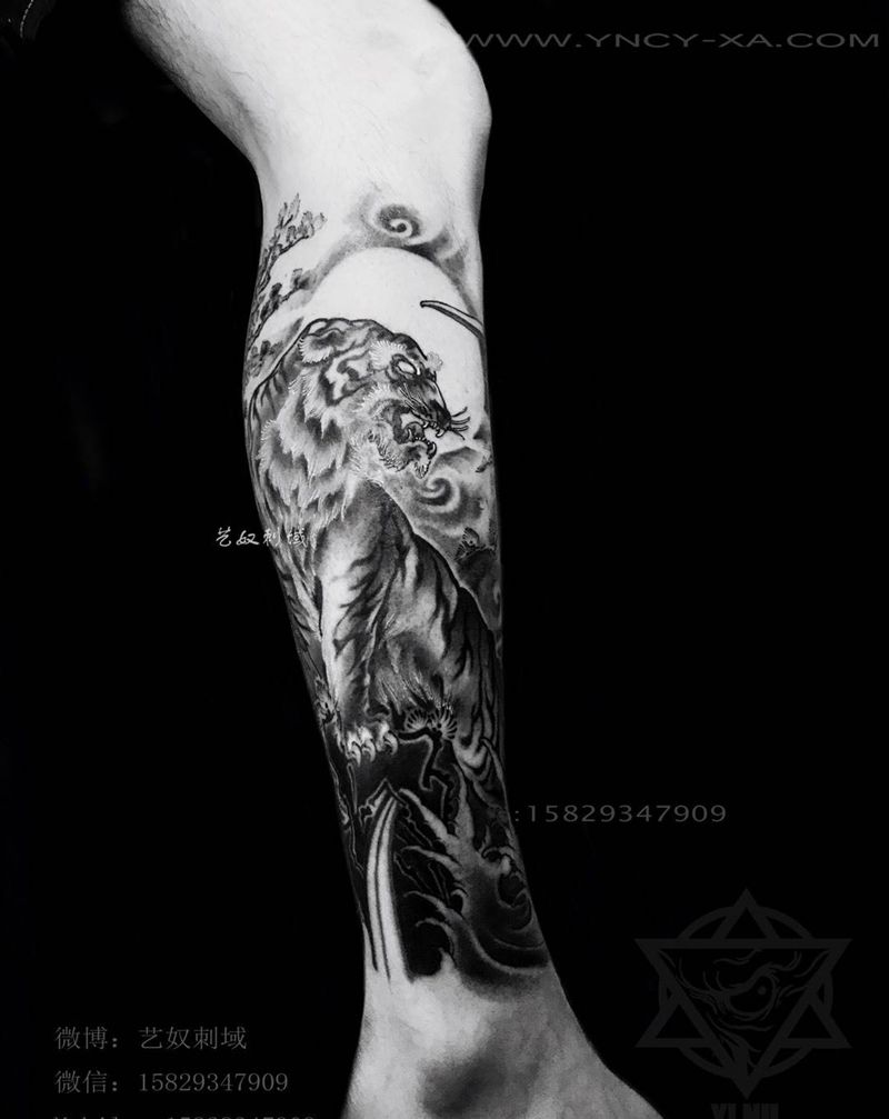 和尚老师原创小腿未完纹身图片_成品腿部传统艺奴刺域原创动物纹身图案