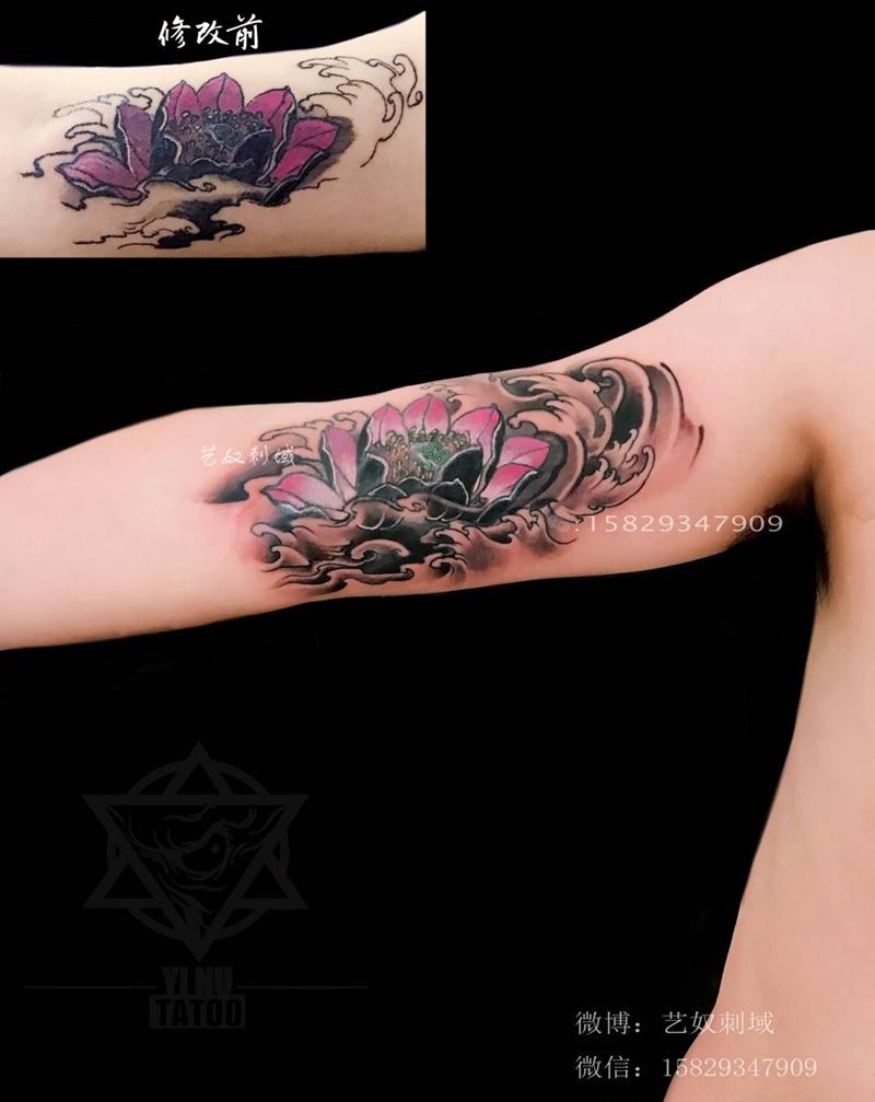 当前位置: 首页 >陕西省西安市纹身店-艺奴刺域纹身图案>莲花修改后纹身图片_成品手臂传统艺奴刺域纹身图案