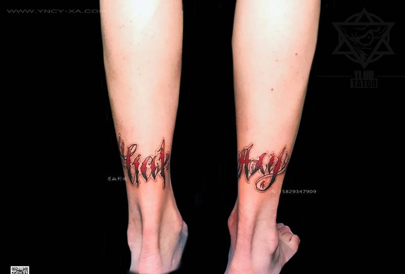 原创奇卡诺花体英文纹身图片_成品原创艺奴刺域字母欧美腿部脚部纹身图案