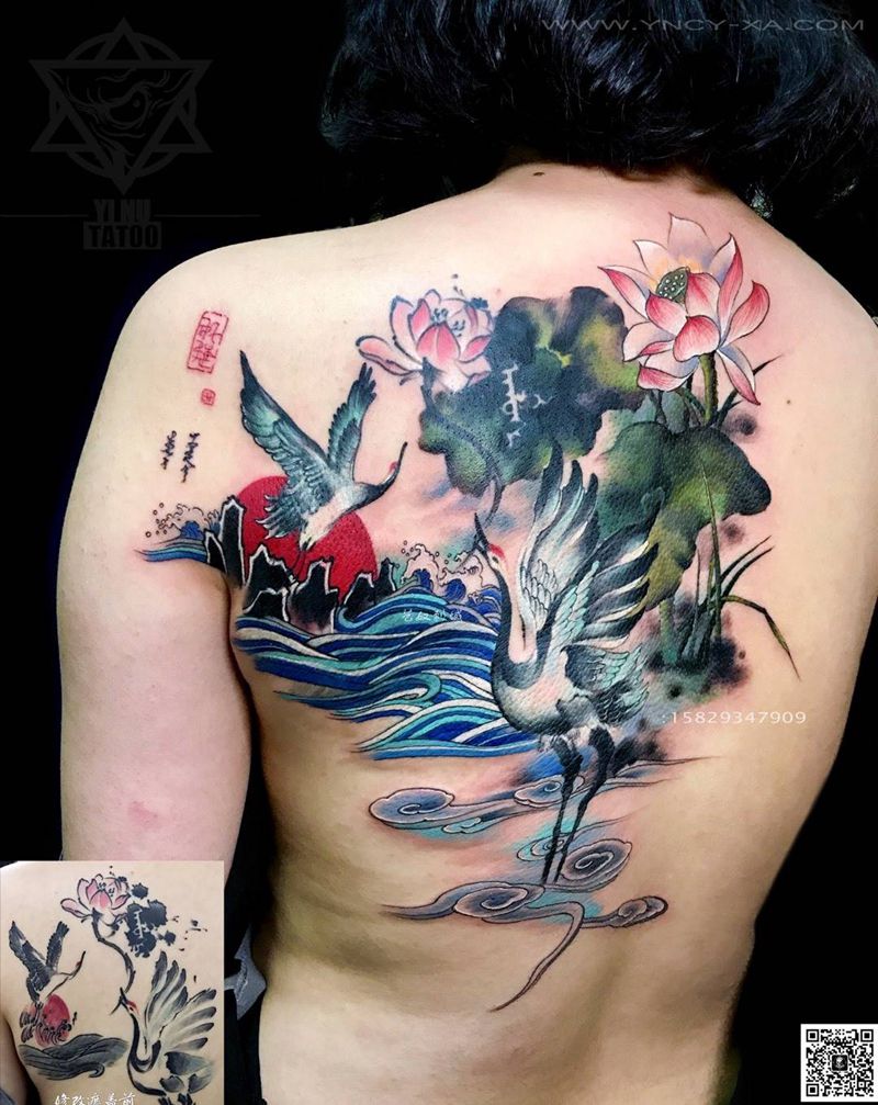 和尚老师原创遮盖修改-拯救美女的美背[调皮]纹身图片_成品背部传统国画植物艺奴刺域原创中国风水墨画纹身图案