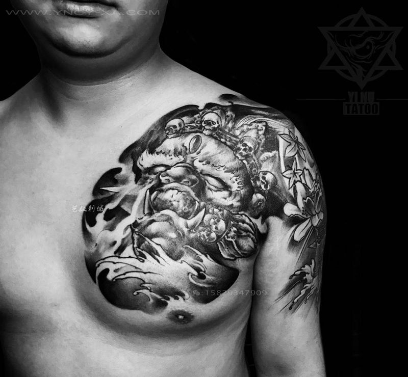 和尚老师原创胸部纹身-大黑天 [愉快]胳膊非本店作品纹身图片_成品艺奴刺域原创胸部传统鬼神人物纹身图案