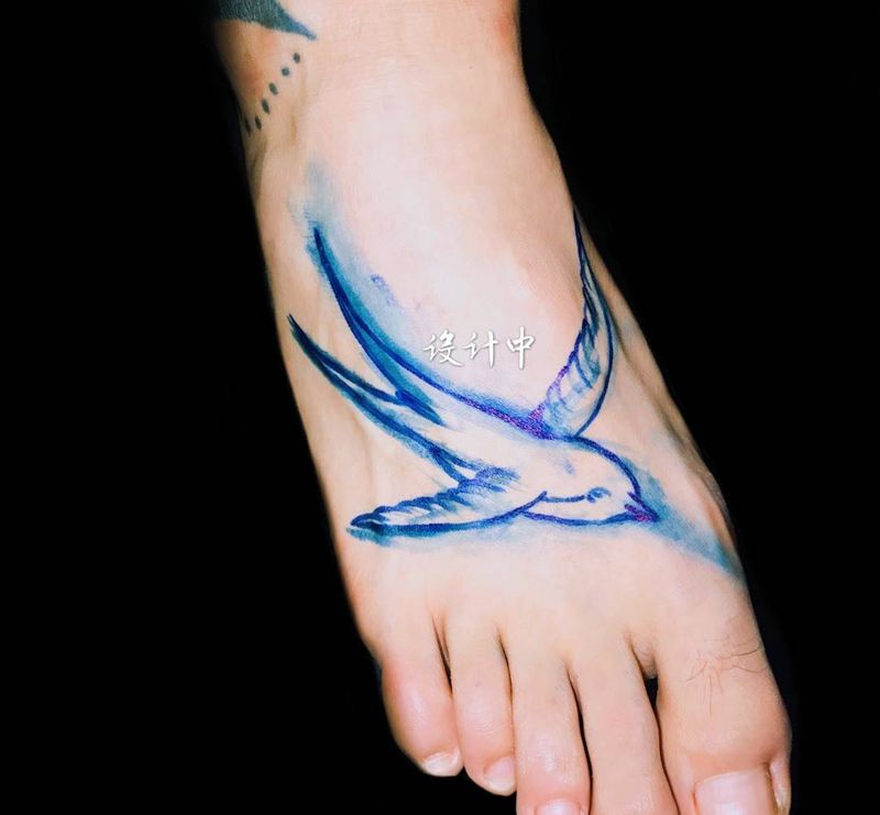 和尚老师原创—燕子。虽然我不清楚为什么纹脚上,但估计有他的想法[奸笑]纹身图片_成品脚部清新动物原创艺奴刺域纹身图案