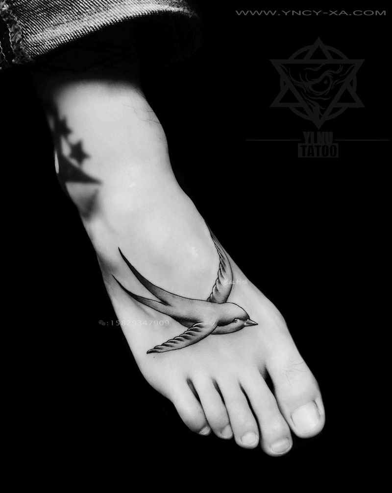 和尚老师原创—燕子。虽然我不清楚为什么纹脚上,但估计有他的想法[奸笑]纹身图片_成品脚部清新动物原创艺奴刺域纹身图案