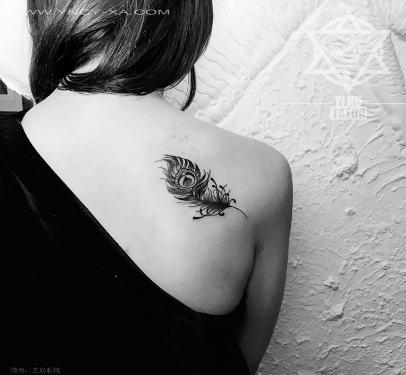 孔雀羽毛纹身图片_成品艺奴刺域清新肩部纹身图案