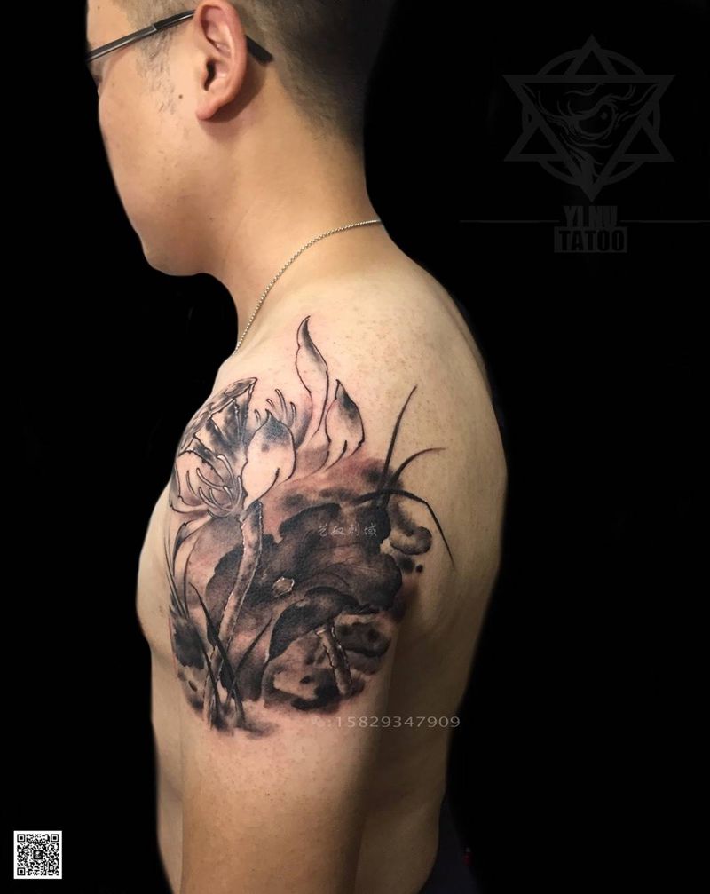 和尚老师原创—水墨莲 。我不在没拍到设计过程[难过][难过]纹身图片_成品艺奴刺域原创中国风水墨画植物国画手臂纹身图案