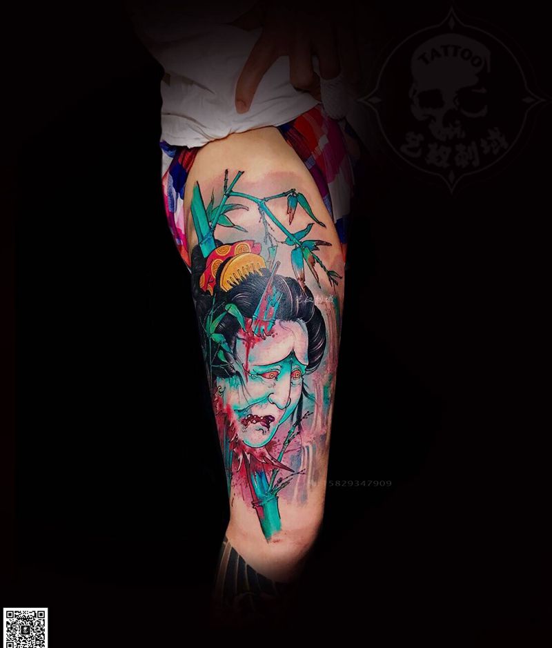 原创新传统纹身图片_腿部新传统西安纹身图案