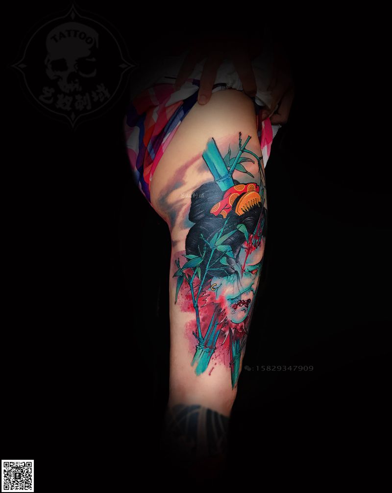 原创新传统纹身图片_腿部新传统西安纹身图案