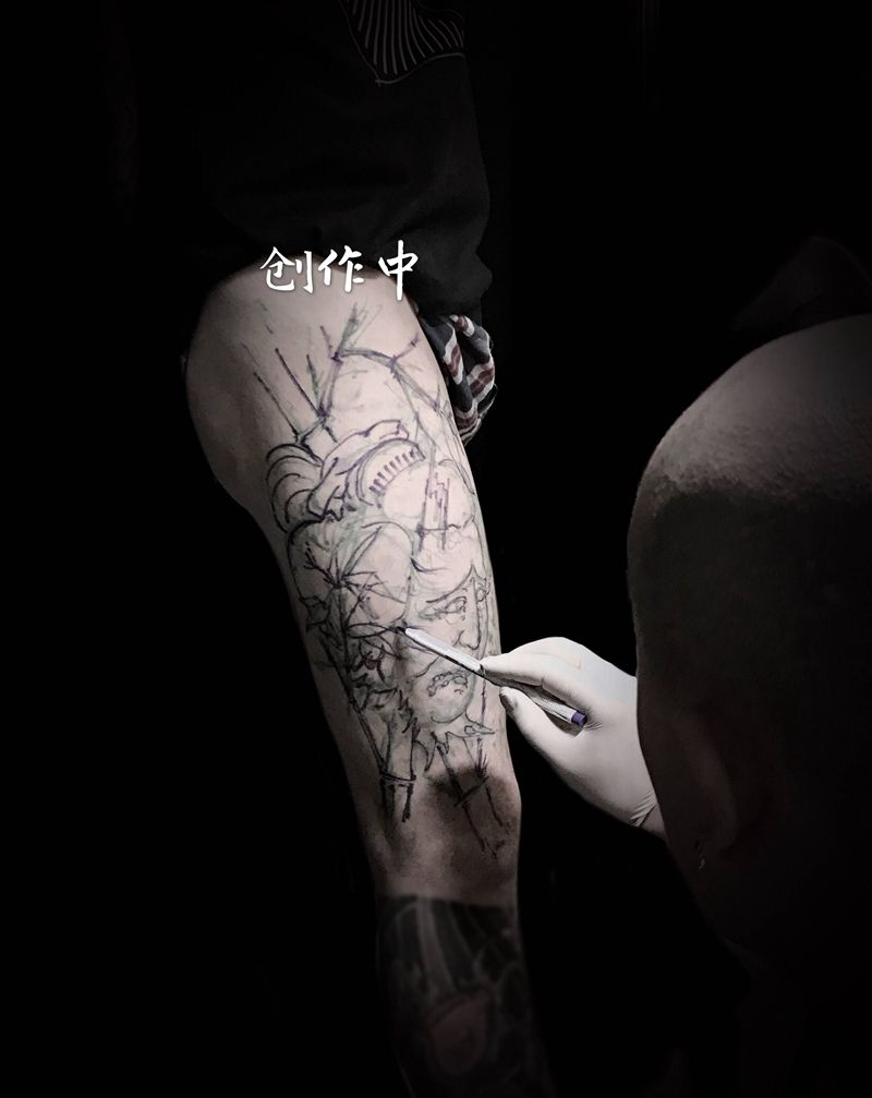 原创新传统纹身图片_腿部新传统西安纹身图案